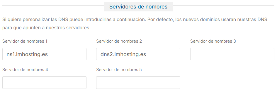 Si deseas cambiar los DNS no te olvides de escribir los Servidores de nombres de tu preferencia antes de comenzar a configurar tu dominio: